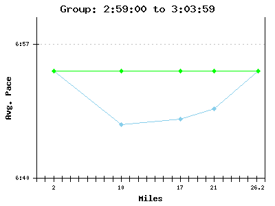 ------------------ 2:59:00 to 3:03:59 ------------------ 2m split avg: 6:54 10m split avg: 6:48 17m split avg: 6:49 21m split avg: 6:50 Overall pace: 6:54