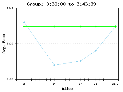 ------------------ 3:39:00 to 3:43:59 ------------------ 2m split avg: 8:29 10m split avg: 8:11 17m split avg: 8:13 21m split avg: 8:17 Overall pace: 8:27