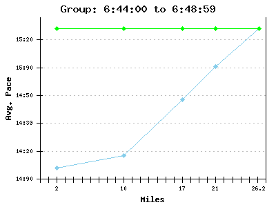 ------------------ 6:44:00 to 6:48:59 ------------------ 2m split avg: 14:15 10m split avg: 14:22 17m split avg: 14:52 21m split avg: 15:10 Overall pace: 15:30