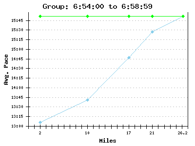 ------------------ 6:54:00 to 6:58:59 ------------------ 2m split avg: 13:01 10m split avg: 13:41 17m split avg: 14:47 21m split avg: 15:27 Overall pace: 15:52